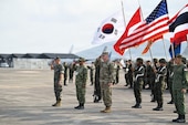 Military leaders from participating nations render a salute at the opening ceremony of Exercise Cobra Gold 2026 in Rayong Province, Thailand, Feb. 24, 2026. The U.S. and Thailand host the 45th annual Cobra Gold from Feb. 24 to Mar. 6, with approximately 8,000 participants from 30 nations to engage in military training and humanitarian projects. The exercise strengthens regional partnerships and demonstrates U.S. commitment to Indo-Pacific security. (U.S. Army National Guard photo by Spc. Christopher Chavero)